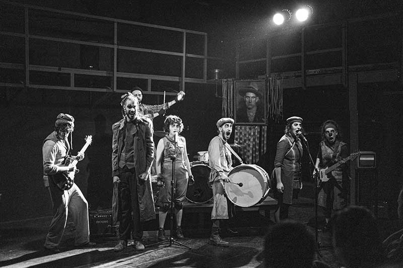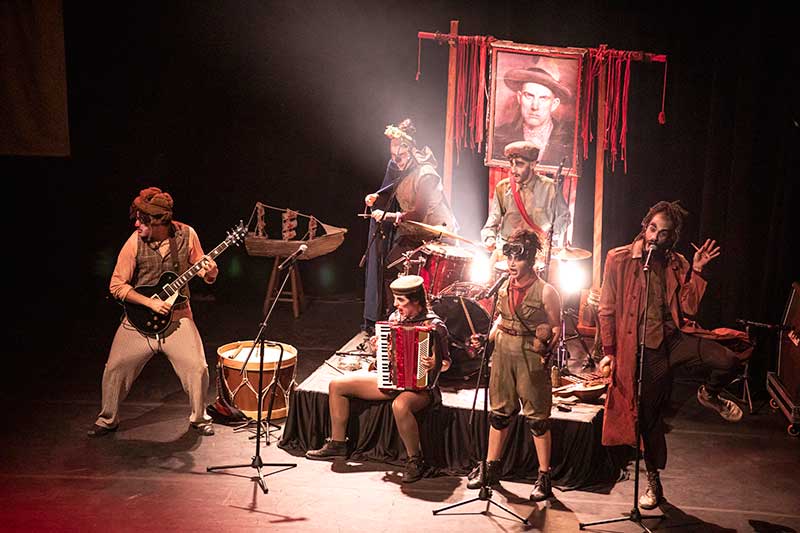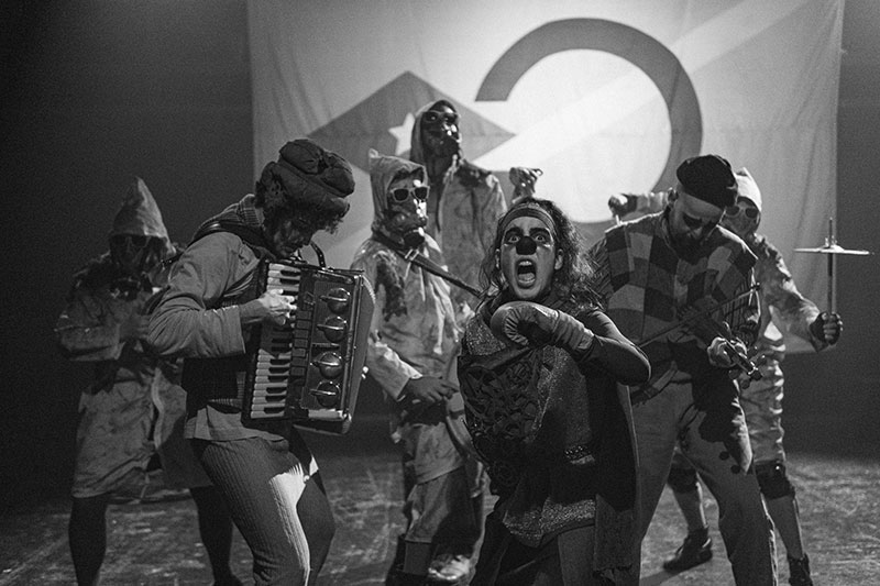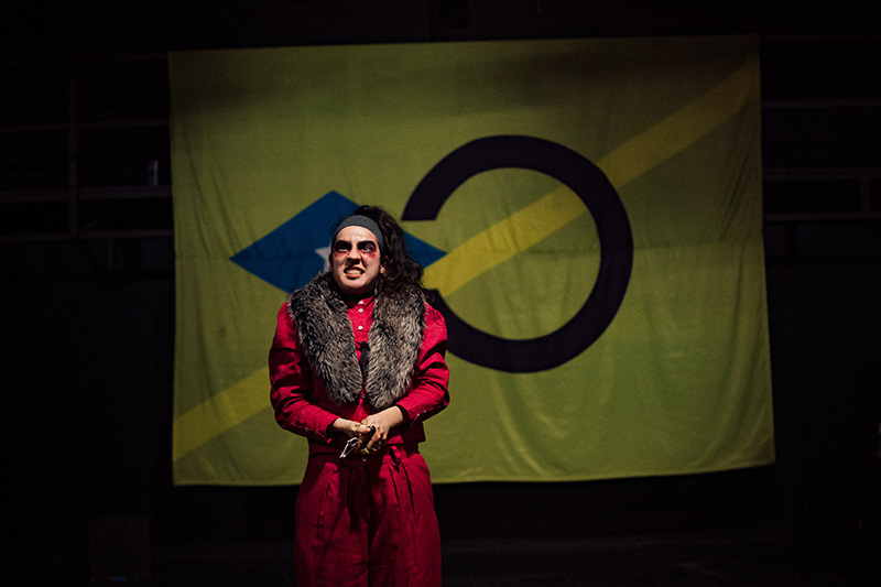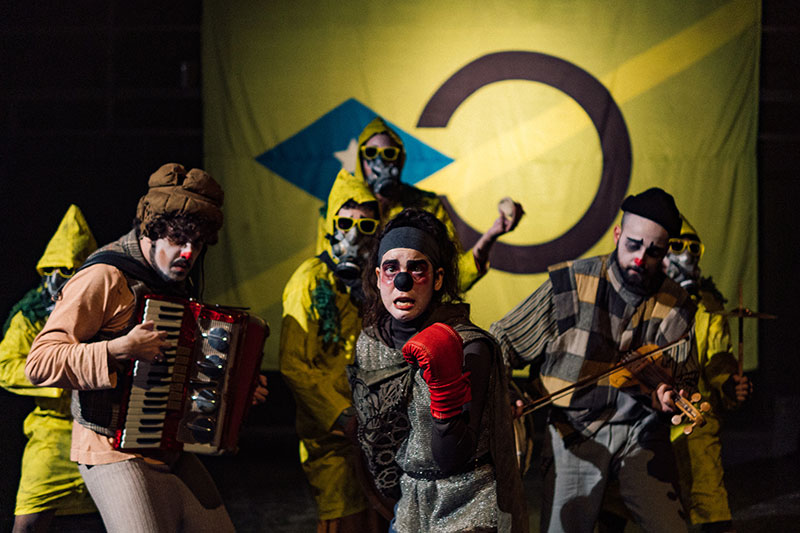 Com texto autoral, o espetáculo gira em torno de quatro camaradas entocados numa célula revolucionária arquitetando uma estratégia para a efetiva democratização da capital do país. A peça conta com uma mistura de texturas e linguagens populares, trazendo elementos de palhaçaria e bufonaria e músicas autorais ao vivo, executadas ao vivo pelos atores e atrizes. Uma sátira, cômica e musical, que busca alertar o público a não perder mais tempo aguardando o 'mundo melhor', e questiona as construções de realidade que ficam apenas no campo das ideias.